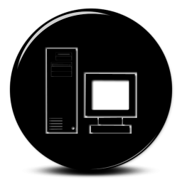 Desktop computer icon black and white: 080225-glossy-black-3d-button- ...
