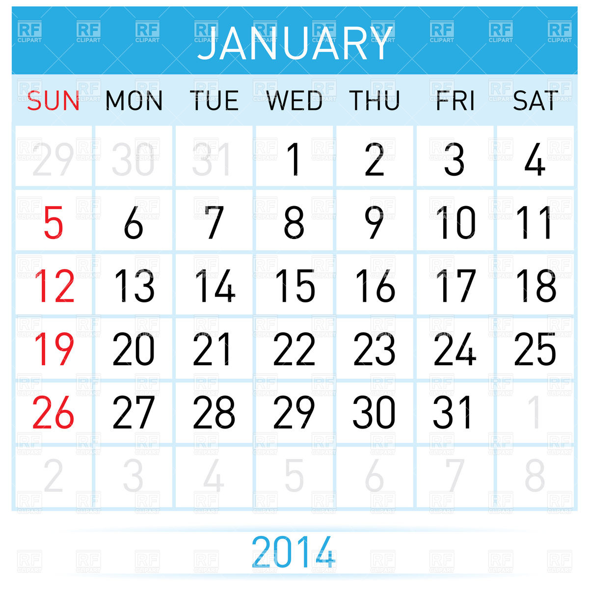 Calendar clipart: 2014 January Calendar Clipart