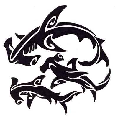 Hammerhead shark outline: 3 Hammerhead sharks (rep.