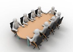 Discussion clipart: 3d businessman on meeting