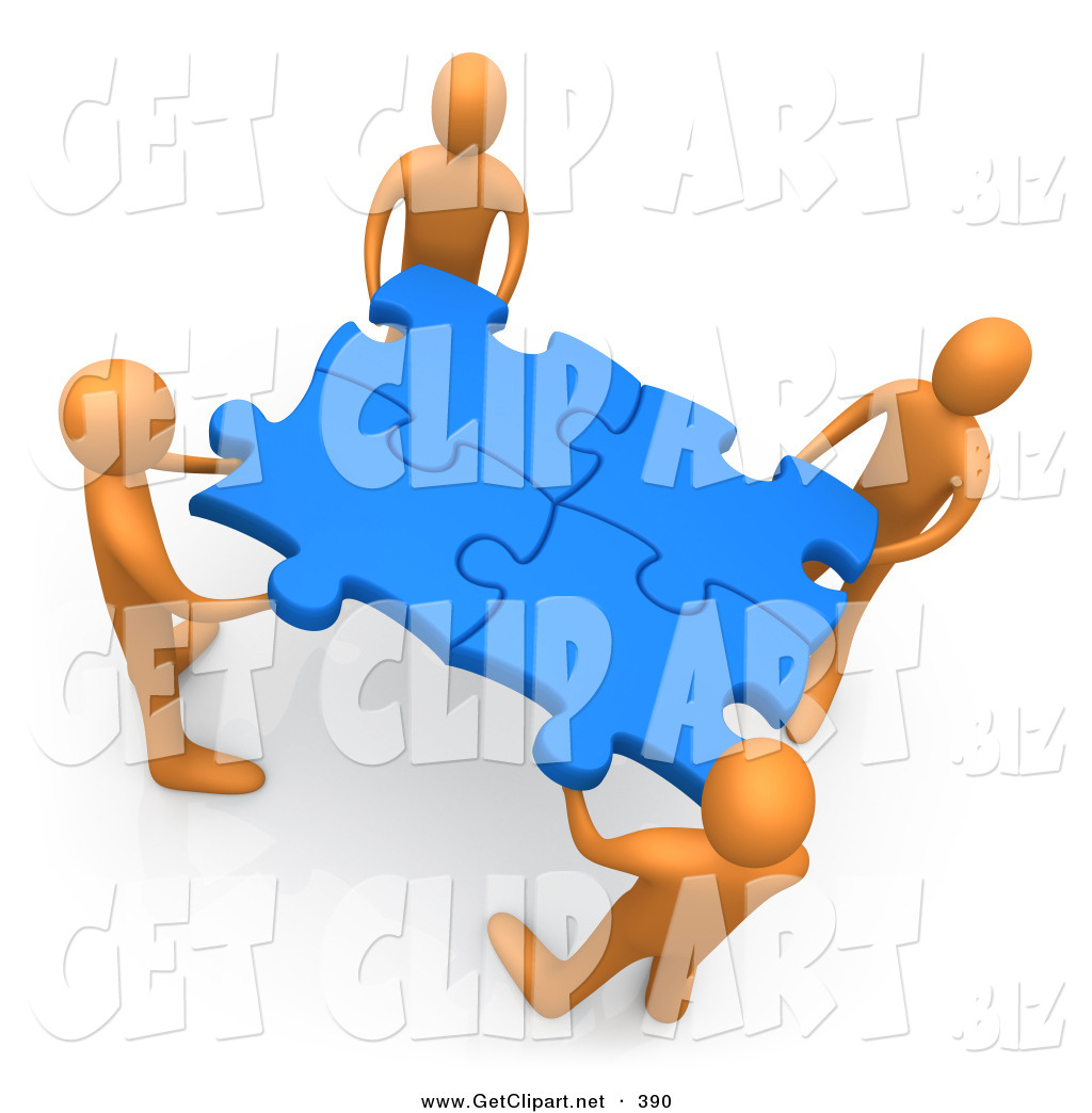 Teamwork puzzle clipart: 3d Clip Art of a Team of 4