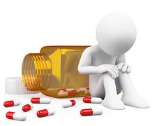 Suicide clipart: 3D depressed man taking pills