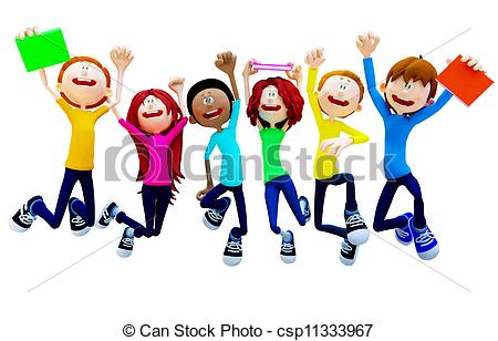 Group of students clipart: 3D Happy group of students -