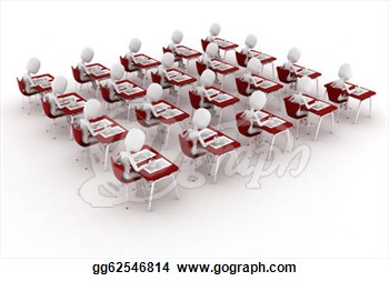 Examination clipart: 3d man in classroom, exam test