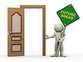 Prospect clipart: 3d man, open door and future