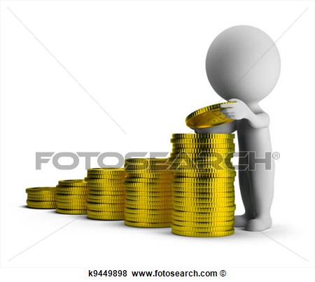 Finance clipart: 3d small person puts gold