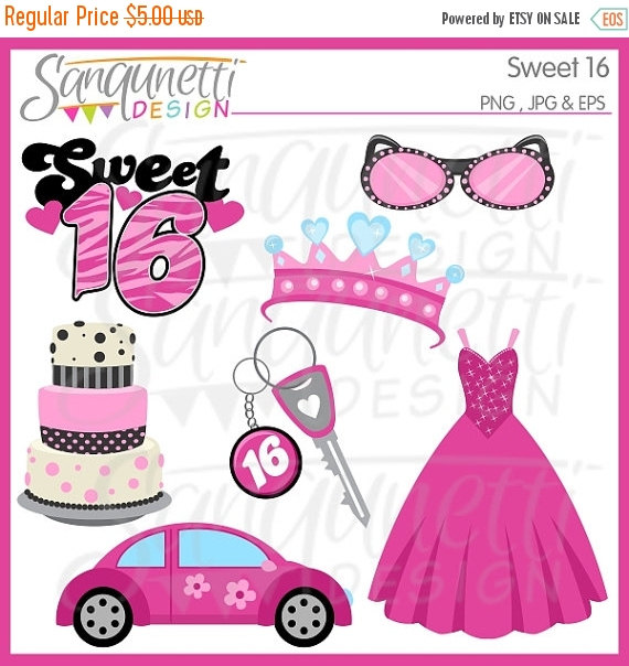 Glamor clipart: 50% OFF SALE Sweet 16 Birthday