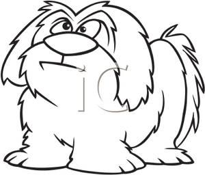 Dog clip art black and white: A Black and White Cartoon of a