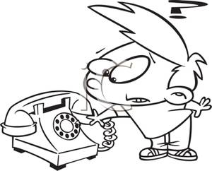 Phone clip art black and white: A Black and White Cartoon of a