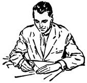 Children writing clipart black and white: A black and white version of a