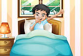 Rise clipart: A boy waking up early
