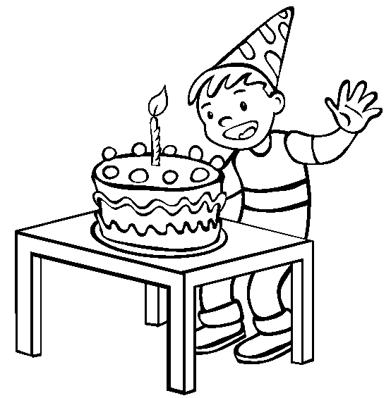 Happy birthday coloring pages: A boy with a birthday cake