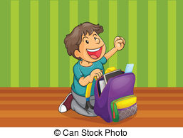 Pack clipart: a boy with schoolbag clip art