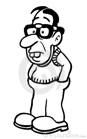 Nerd glasses sketch: A cartoon drawing of a nerd.