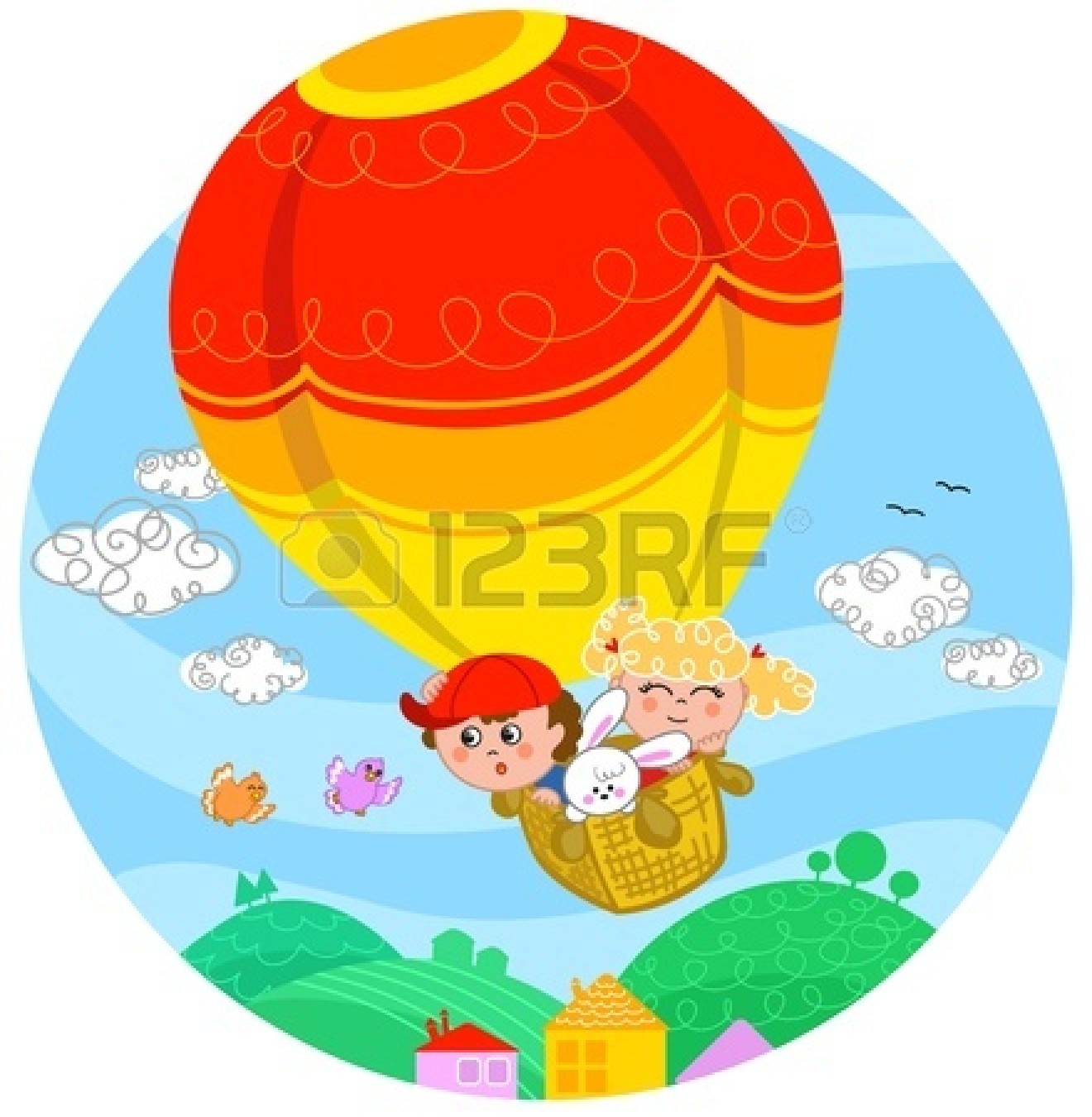 Cute hot air balloon drawing: a cheerful balloon : Two cute