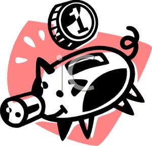 Piggy bank clipart black and white: A Coin Over a Piggy Bank