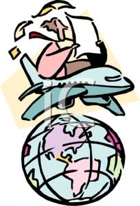 Plane around the world clipart: A Colorful Cartoon of a Man In