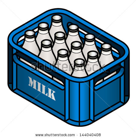 Crate clipart: A crate of glass milk bottles.