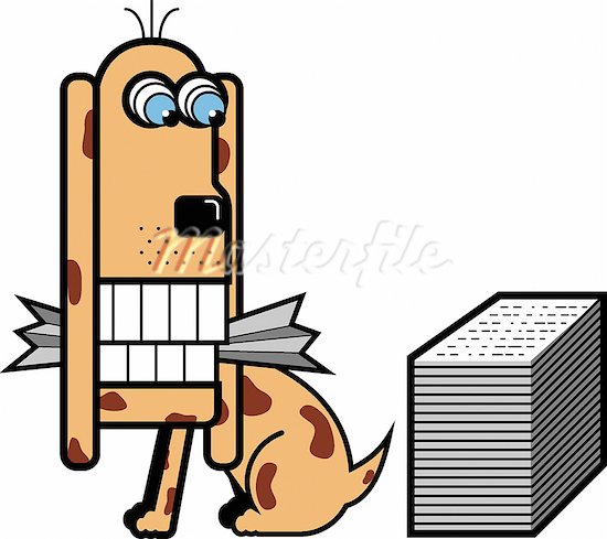 Stack of paper icon: A dog chewing up a stack of