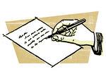 Kids hand writing clip art: A drawing of a hand writing a