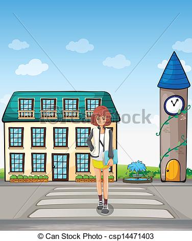 Street clipart: A girl walking in the street -