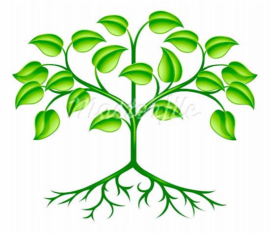 Plant with roots clipart: A green stylised tree design
