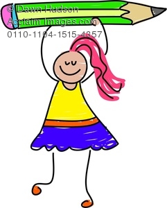 Little girl writing clipart: A Happy Little Girl Holding A
