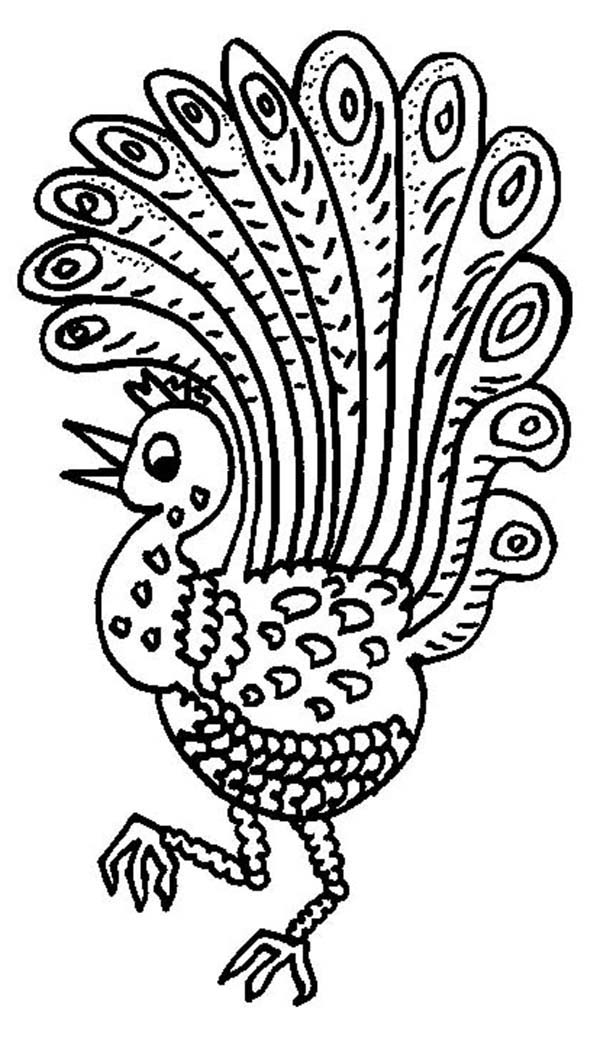 Baby peacock coloring pages: A Happy Peacock Dancing Around