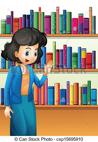 Library clipart: A librarian in front of the