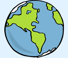 Globe drawing: A line drawing of a globe,