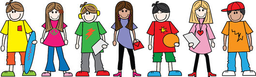 Teenager clipart: A line of teens teenagers