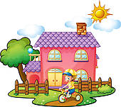 Inside play clipart: A little boy playing in front