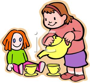 Mother's day tea clipart: A Little Girl Having A Tea
