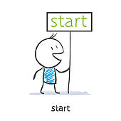 Beginning clipart: A man holds a sign start