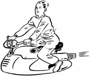Motorcycle riding clipart: A Man Riding a Spaceage Jet