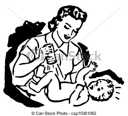 Changing clipart: a mother changing a young