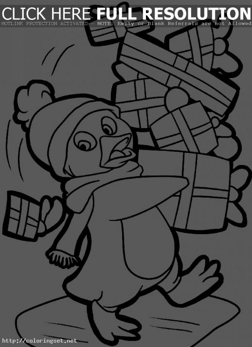 Christmas penguin coloring pages: A Penguin Brings Lots Of