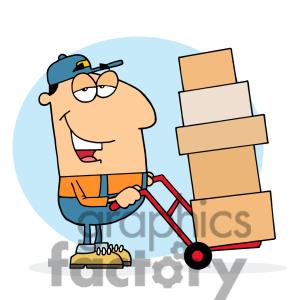 Postman clipart: a postman using a dolly to