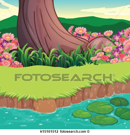 Levee clipart: A scenery at the riverbank