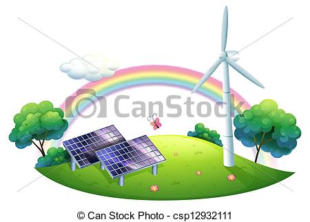 Energy clipart: A solar energy and a windmill