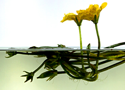 Flower plant with roots: A water lily's flowers either