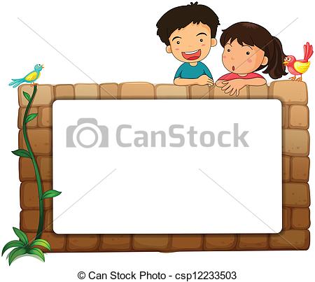 Board clipart: A white board, kids and birds