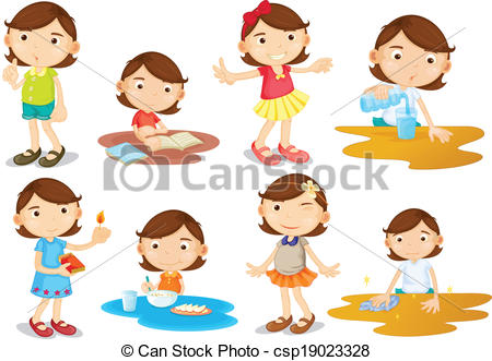 Routine clipart: A young girl's daily