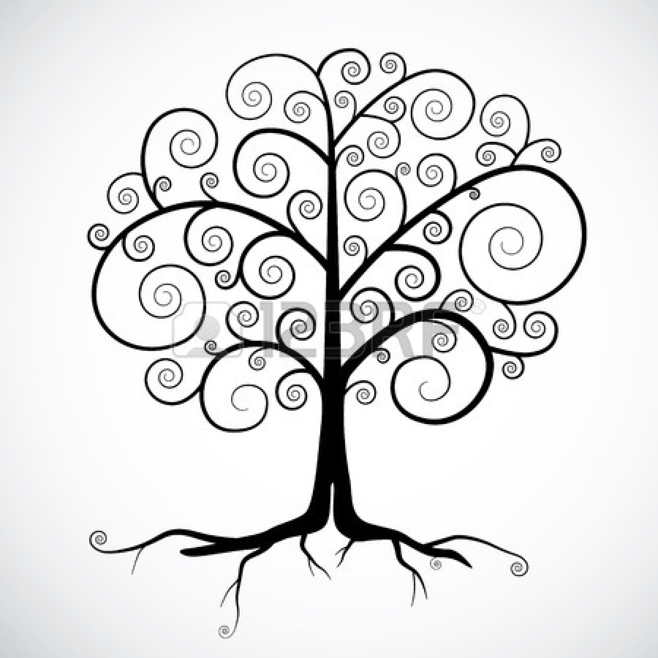 Oak tree silhouette with roots: Abstract Vector Black Tree