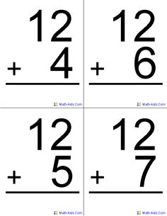 Kindergarten math addition: Addition Flash Cards