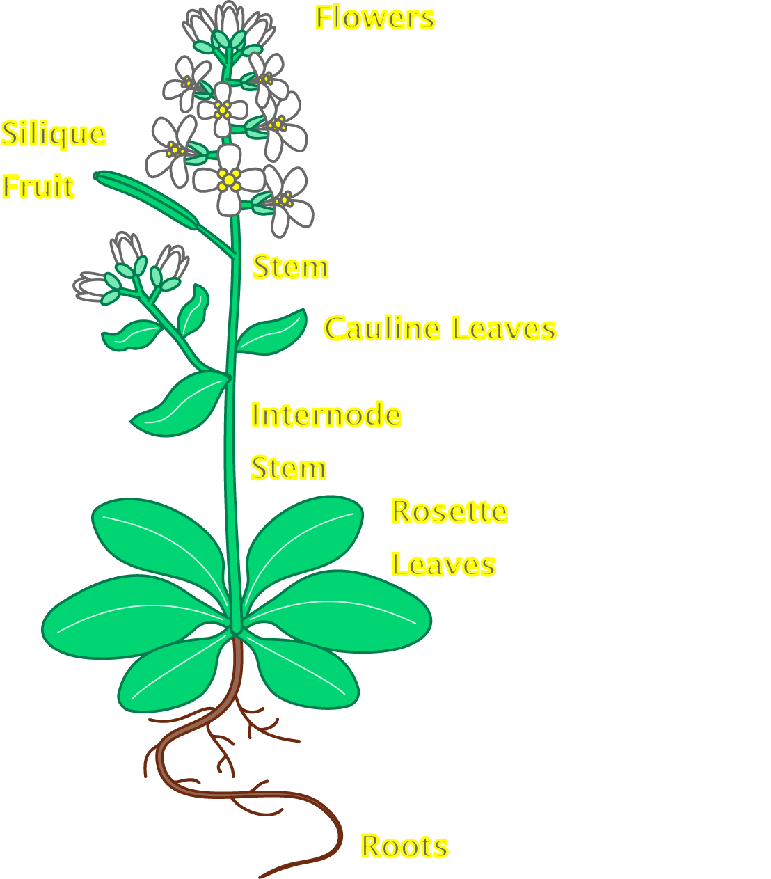 Flower plant with roots: adult Arabidopsis plant: