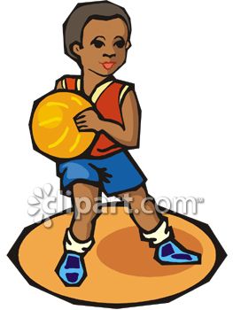 Kid basketball player clipart: African American Boy Playing