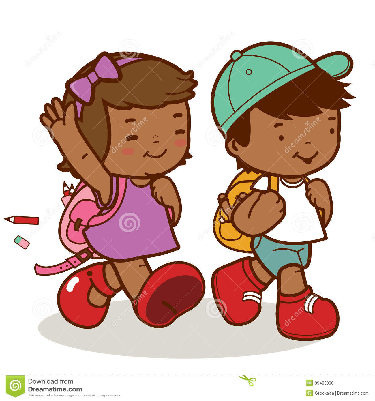 Walk clipart: African American kids walk to