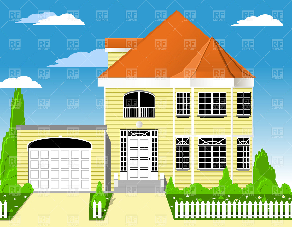 Suburb clipart: American suburban house with