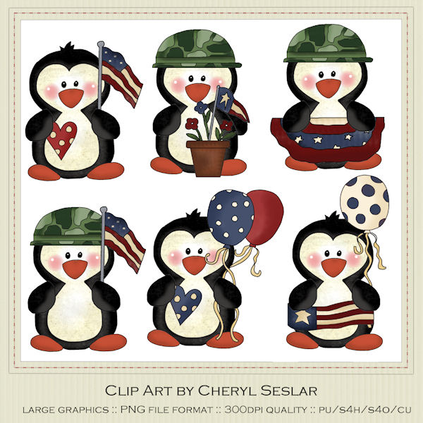 Americana clipart: Americana Military Penguins